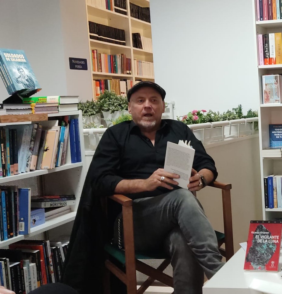 RICARDO VIRTANEN (Madrid, 1964). Professeur, critique littéraire, poète, aphoriste, peintre et musicien. Docteur ès Philologie Hispanique en 2007 avec la thèse La experiencia vanguardista de Guillermo de Torre. Il a été professeur à l’Université Complutense de Madrid et à l’Université de Tolède, Faculté d’Education. Il a publié en 1999 le livre de linguistique Lengua resuelta (1999), et parmi ses travaux critiques on peut citer Hitos y señas. Antología de la poesía española (1966-1996) (2001), De tu tierra. La poesía manchega de entre siglos (2015), Vestuario de almas. Antología del epitafio español del siglo XX (2015) y Almanaque 1935 (2015); ainsi que les éditions de Carpe amorem, d’Aurora Luque, Con la cal en los dedos, de Pilar Blanco; Haikus completos, de Luis Alberto de Cuenca; Sin por qué (Poesía esencial 1970-2018) (2020), de José Corredor-Matheos, El triunfo de estar vivo. Poesía 1996-2012, de Luis Alberto de Cuenca, et Belcebú y otras novelas cortas (2015), de E. Pardo Bazán. Il a publié les recueils de poésie Notas a pie de página (2005), Epitafios (2005), Intervalo (2019), (Prix José Luis Hidalgo) et Veinte disparos canallas (2020); et les livres d’haikus La sed provocadora (2006), Sol de hogueras(2010), Nieve sobre nieve (2017), Llama de luna (2021) et Hilo de lluvia (2024). Il est l’auteur du journal Cuaderno de interior (2013) et dur roman Ardiendo bajo el agua (2022). En tant qu’aphoriste, il a publié Pompas y circunstancias (2008), Laberinto de efectos (2014), El funambulista ciego (2019), Bazar de esquirlas (2019), Interruptores (avec Carmen Canet) (2021) et El vigilante de la luna (2024), ainsi que les anthologies La sonrisa de Nefertiti (2020) et Un instante en el paraíso (2023). Il fait partie des anthologies d’aphoristes Aforismos contantes y sonantes (2016), Verdad y media (2017), Espigas en la era (2020), El cántaro y la fuente (2020), Mil aforismos sobre el amor y otras pasiones (2022), Puntales de la brevedad (2023) et 14 Aforistas 14 (2025), ainsi que de nombreuses anthologies poétiques. Il a été traduit en anglais, français, galicien, italien, portugais et finnois.