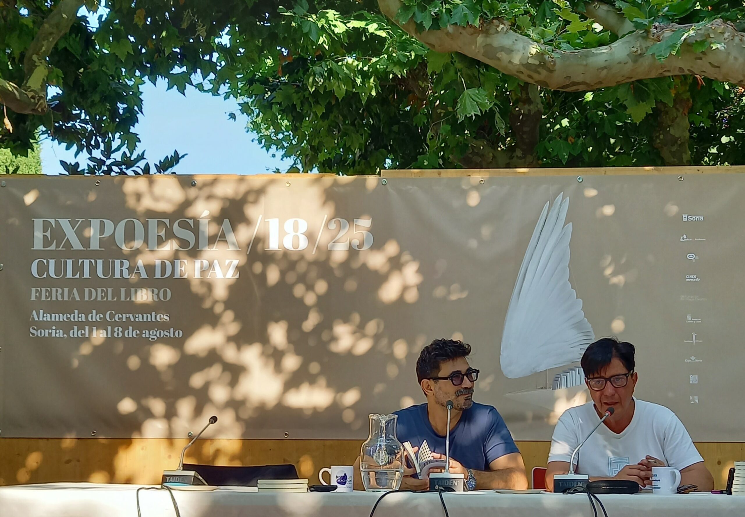 Marcelo Morales (à gauche) avec le poète espagnol Miguel Ángel Curiel. Festival de poésie Expoesía, Soria (Espagne), août 2025. Photographie MA Real
