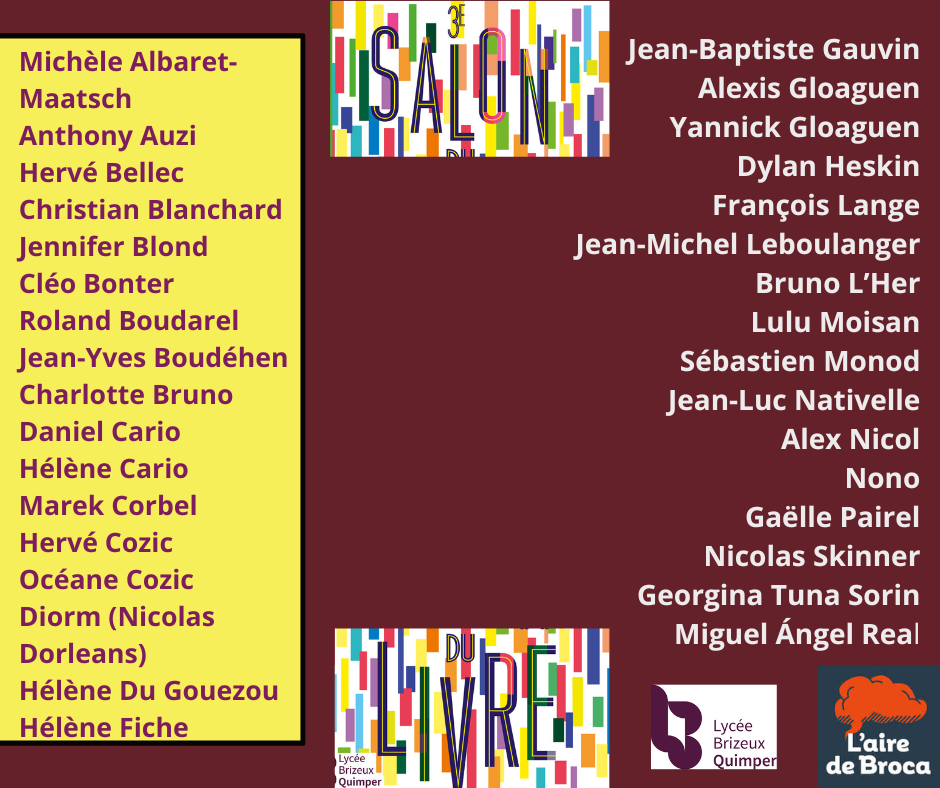 Ce dimanche, le Lycée Brizeux de Quimper organise son 3e Salon du Livre. Parmi les auteurs/autrices invités, notre collaborateur Miguel Ángel Real. De 10h à 18h, 8 rue de Rosmadec, Quimper